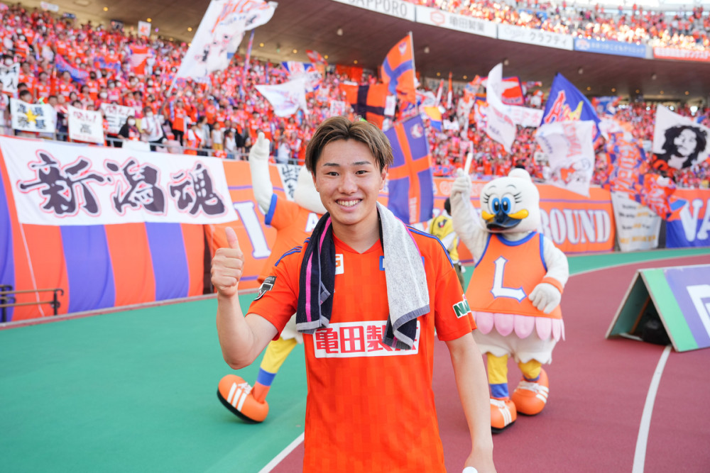 2列目からのドリブルや強烈なシュートで、新潟の攻撃を牽引するアタッカー。