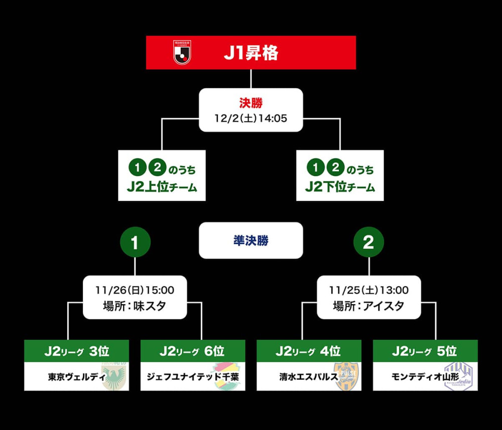 ・2023明治安田生命J2リーグの年間順位3~6位の4クラブが各1試合のトーナメントを行う。