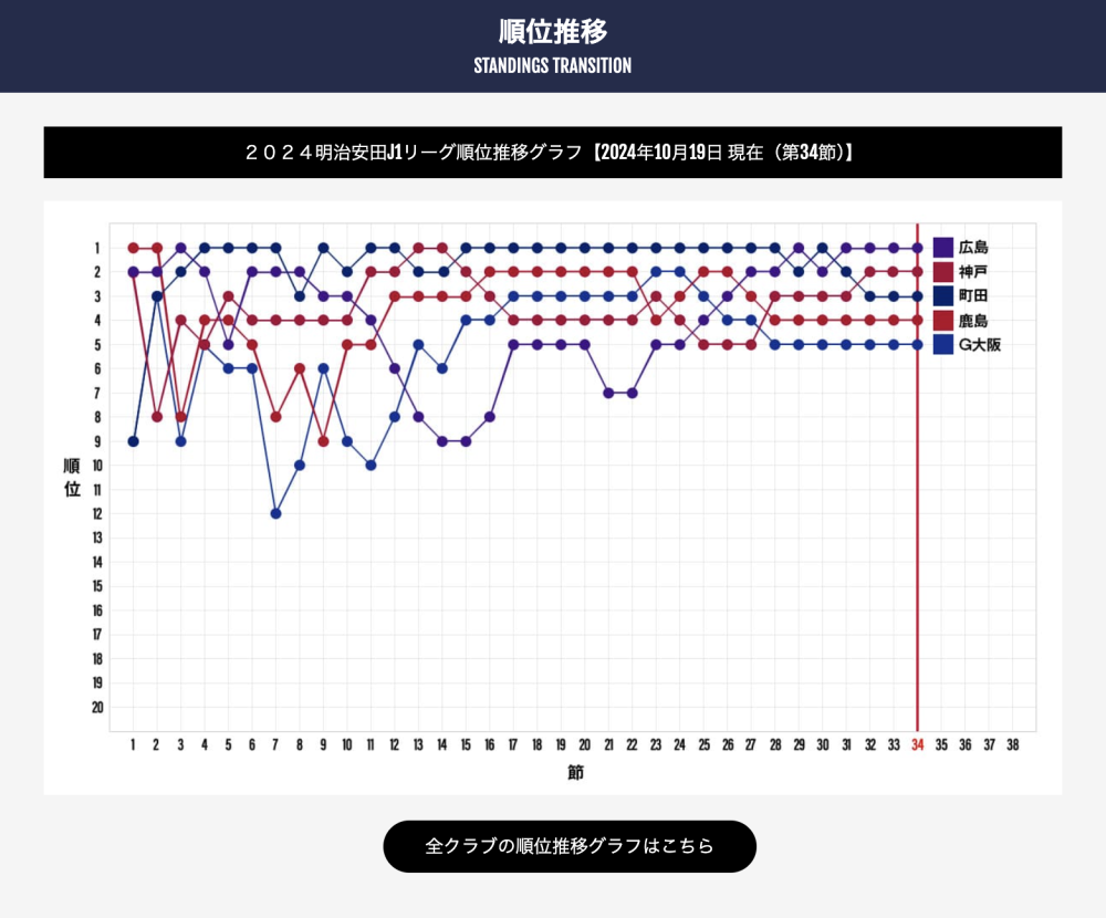さらに、推移を確認したいクラブだけに表示を絞ることもできるので便利!