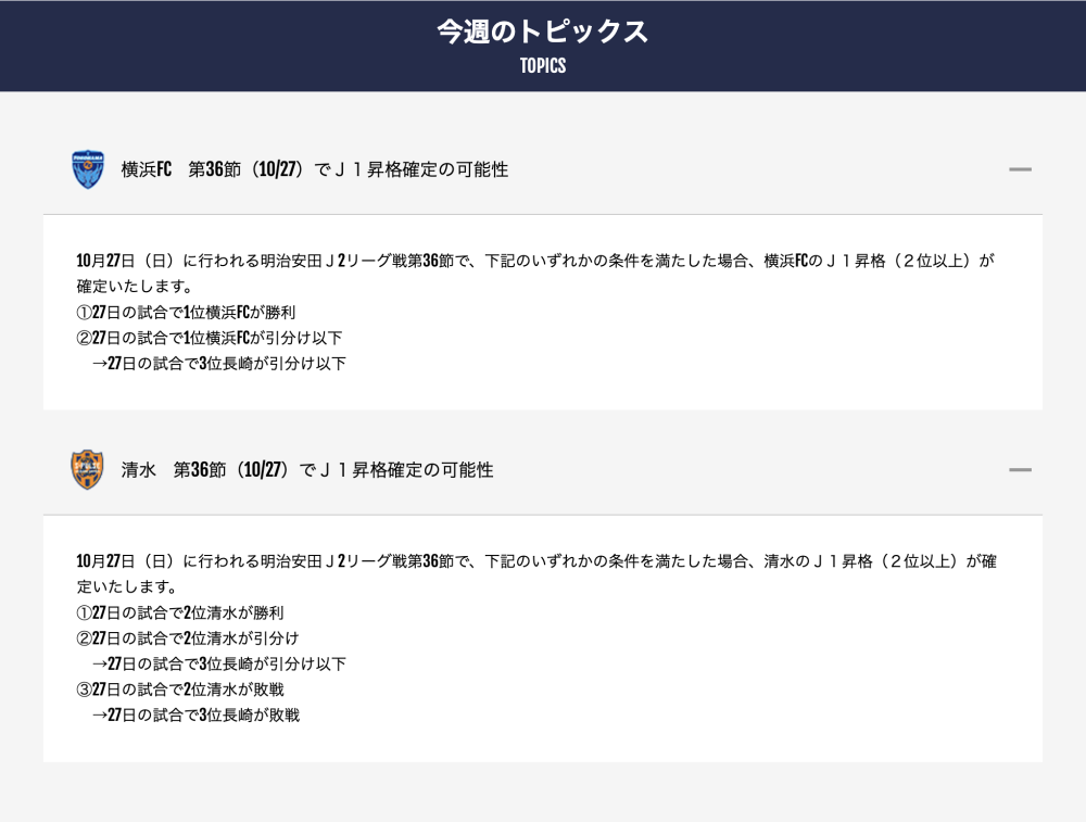 試合前にはトピックスを確認して、応援しているクラブだけでなく他会場の試合の動向にも注目してみてください!