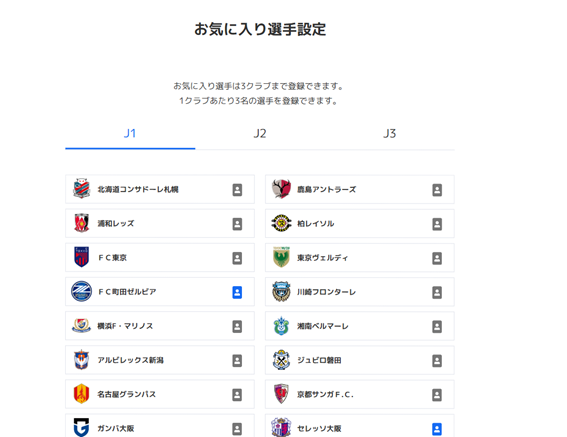 ③登録したい選手の所属クラブを選択し、右側のアイコンをタップ