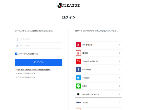 ①JリーグIDでログイン