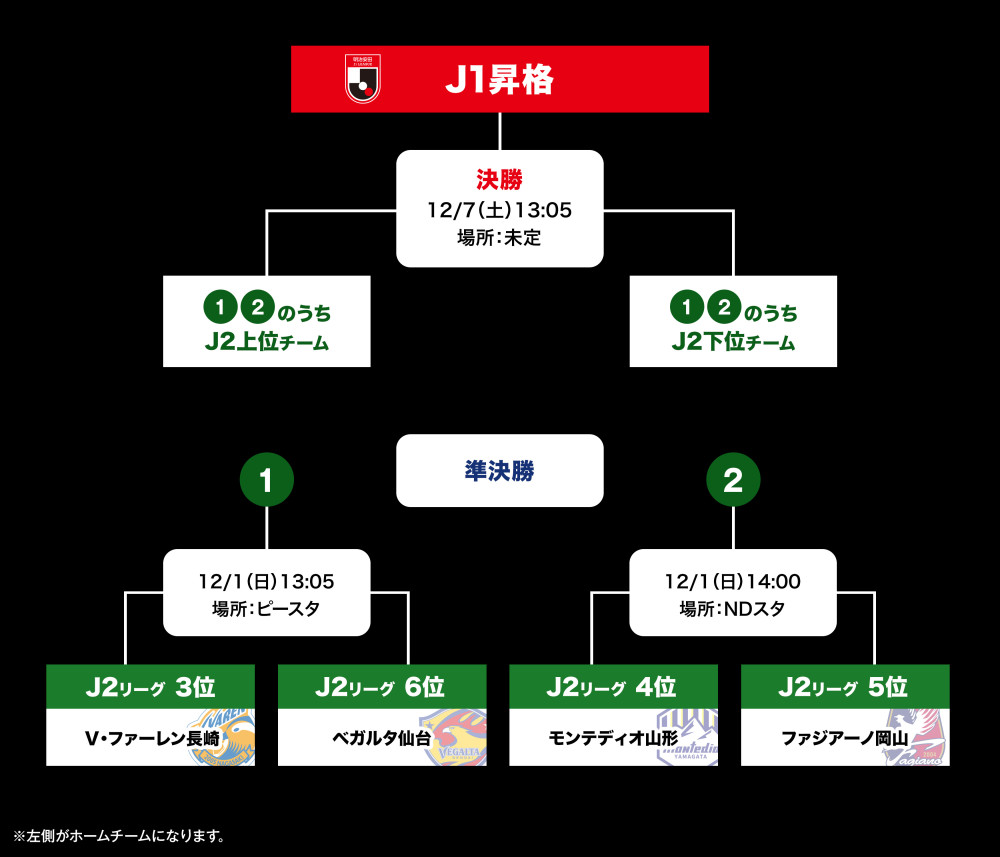 ・明治安田J2リーグ年間順位3~6位のクラブによる各1試合のトーナメント方式(計3試合)