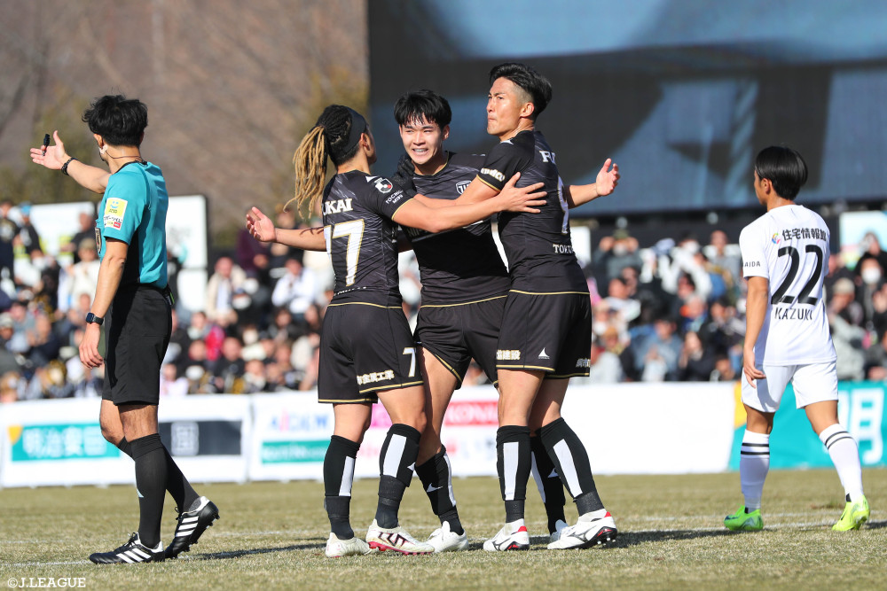 11月29日に行われた最終節では、開幕戦の相手である相模原とアウェイで対戦しました。持ち前の攻撃力を見せつけ、5-0と圧勝。J3参入1年目で優勝を果たしました!