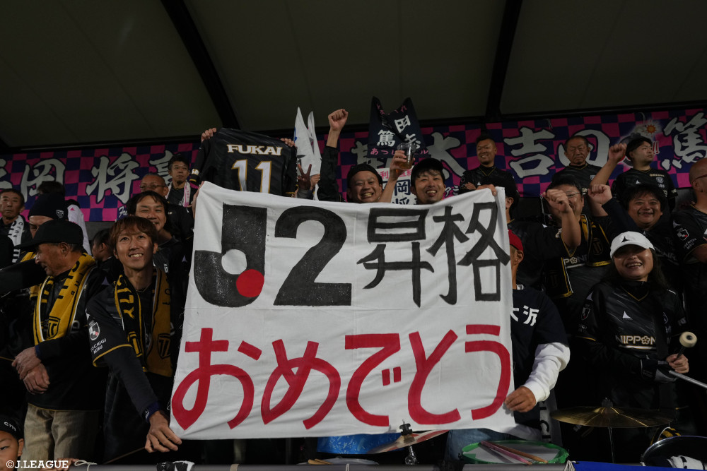 11月23日にホームで行われた第37節のAC長野パルセイロ戦。前半こそ得点が生まれなかったものの、後半に3得点を奪い快勝。クラブ史上最多の4,500人を超える観衆の前で、J2昇格を決めました!