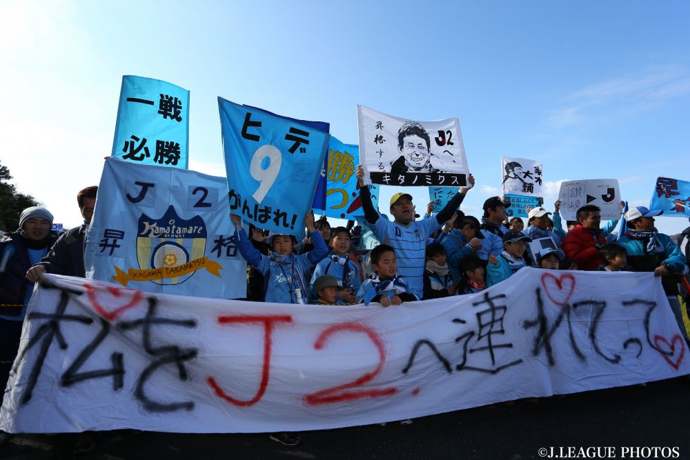 カマタマーレ讃岐 高橋泰選手が2得点をあげ、通算1勝1分けでJ2昇格。初のJ2参戦!