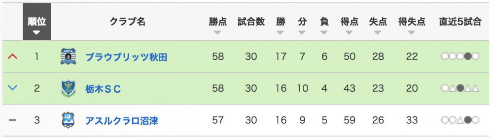 ブラウブリッツ秋田は第32節の勝利で首位に浮上!