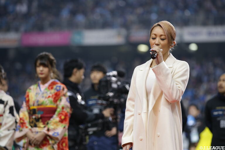 試合開始直前に、倖田來未さんが国歌独唱♪