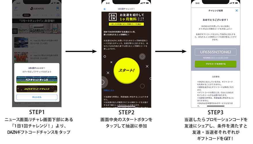 DAZNギフトコードが当たる抽選にどなたでも1日1回挑戦できます!