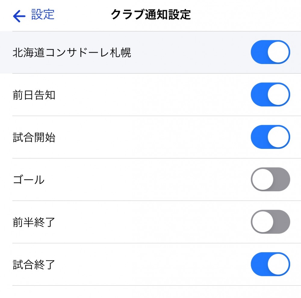 お気に入りクラブを選択して、通知してほしい情報をONにしてください。