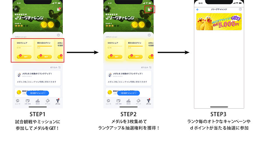 メダルを3枚集めてdポイント等が当たるチャレンジに参加しましょう!