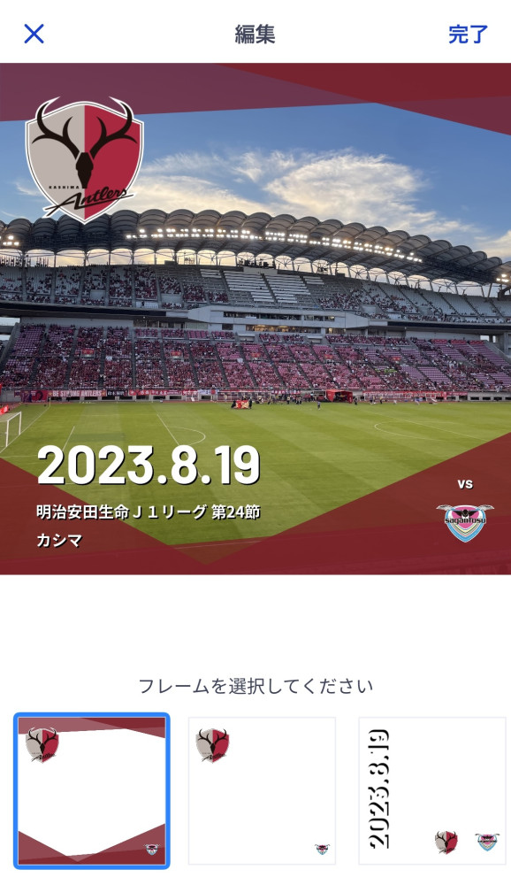 クラブカラーをモチーフにデザインされたフォトフレームで、画像を保存したり、SNSでシェアができます。