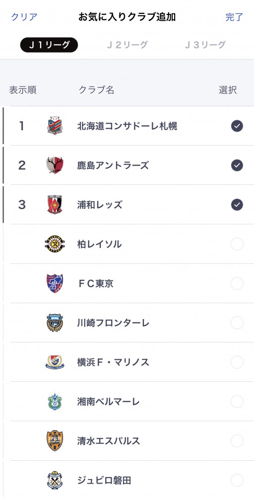 お気に入りクラブはJ1・J2・J3クラブからいくつでも登録可能!