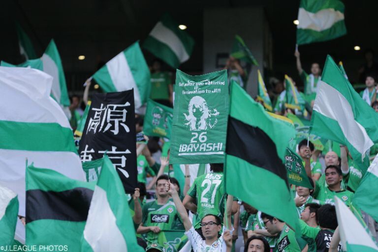 東京ヴェルディの試合前にはたくさんの旗があがります!