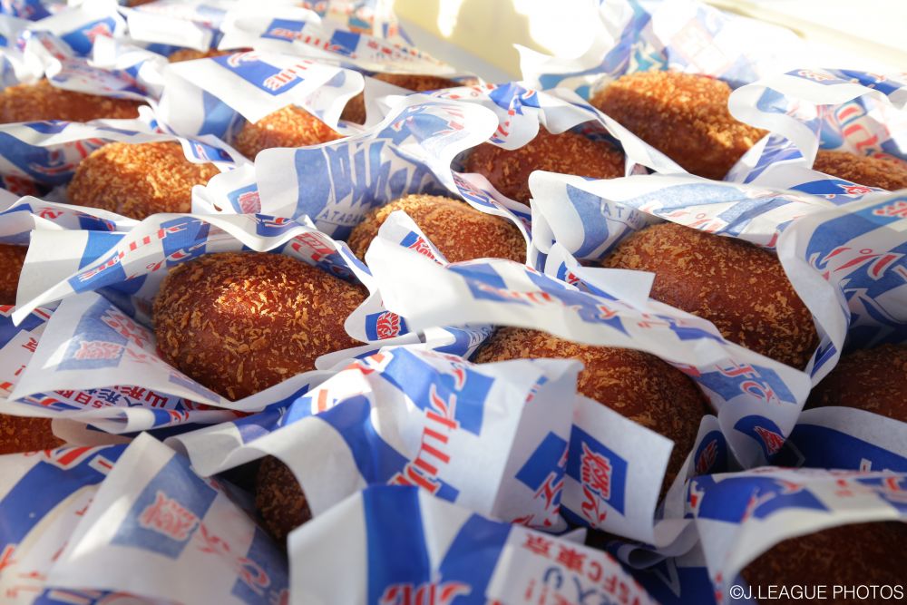 ザスパクサツ群馬戦では、草津温泉が有名ということから温泉まんじゅうが入っていました!