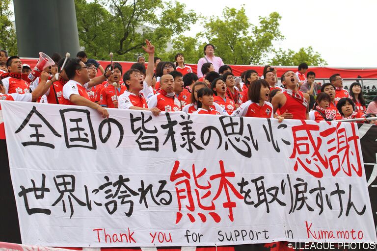 熊本地震で被災した、熊本・大分などの九州地域に向けても多くの他クラブサポーターからメッセージが。