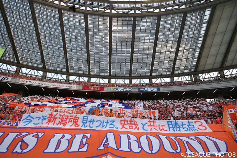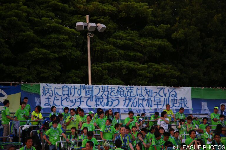 アルビレックス新潟所属早川史哉選手の急性白血病が公表された後の試合では、早川選手とクラブへ向けての弾幕が掲げられました。