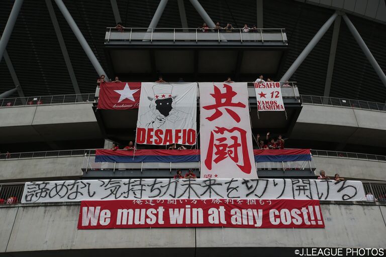 サポーターがクラブ選手に向けて掲げる弾幕。