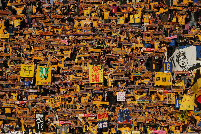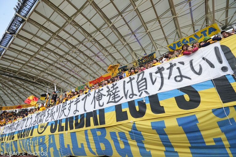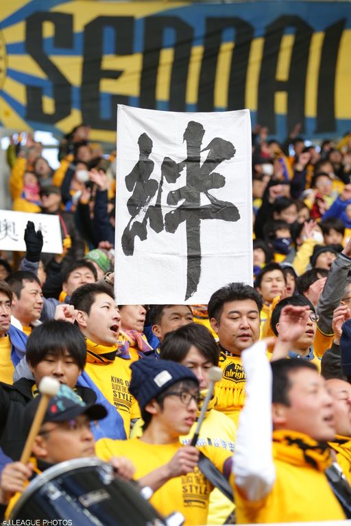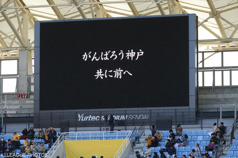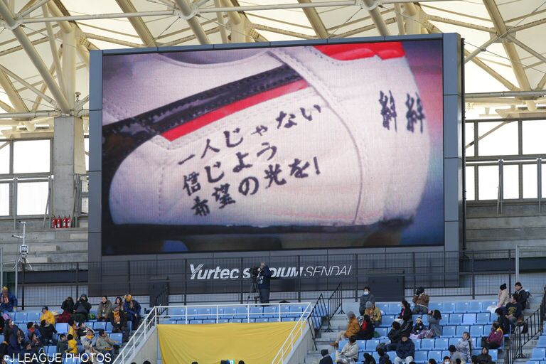 3月11日(土)にユアテックスタジアム仙台にて開催されたベガルタ仙台とヴィッセル神戸の一戦では、感謝の気持ちとチカラ強いメッセージを書いたフラッグが掲げられました。
