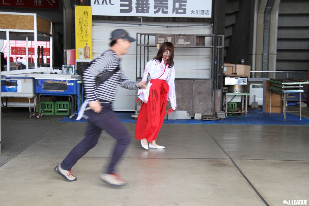 ゾンビにびっくりしたり、スタジアムを走り回ったり、普段は入れない場所に入れたり、さらにはOB選手にも会えたり。