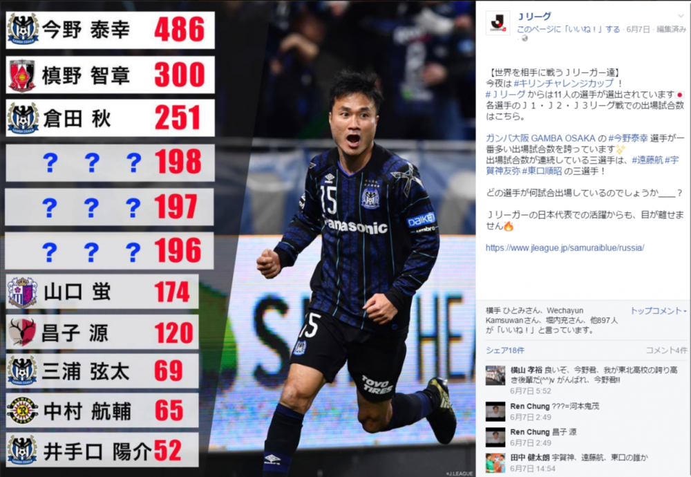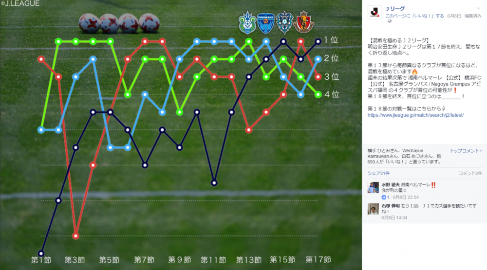 Jリーグでは公式Twitter、Instagram、Facebookを展開しています。