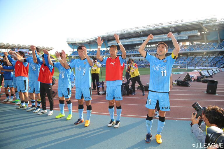 試合が終わったら、選手がピッチを一周し、サポーターにあいさつをします。