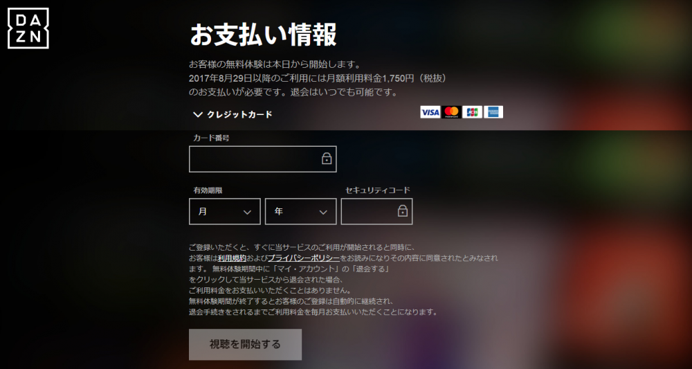 最後にカード情報を記入し、「視聴を開始する」をクリック。