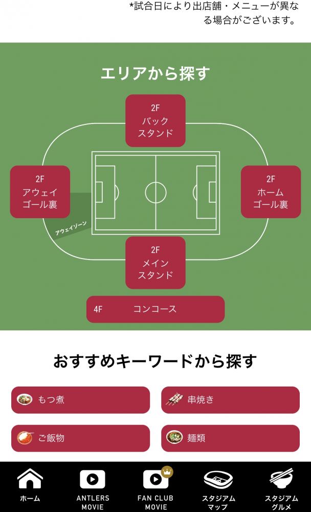 Antlers Wi-Fi Portalのスタジアムマップを見れば