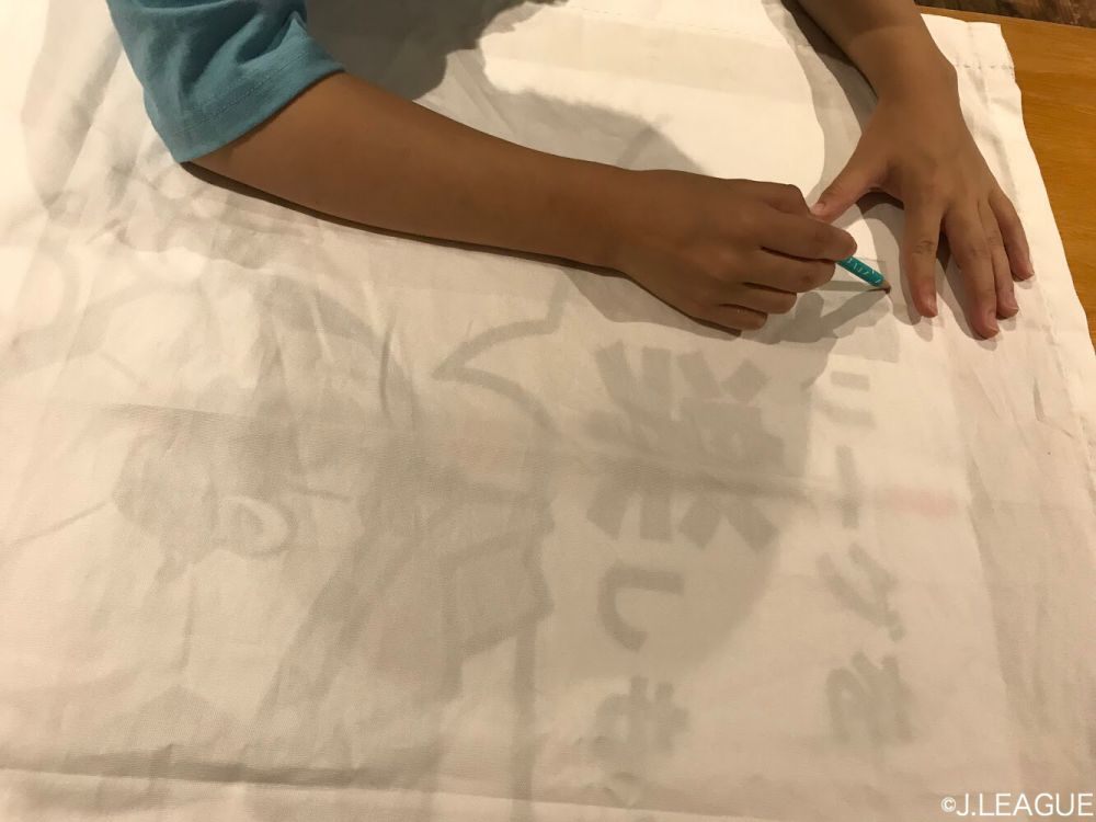 デザインしたイラストや写真を布に書き写していきます。