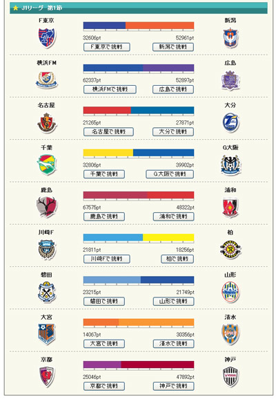 現在の選手顔写真クイズの状況(5日14時40分現在)は左の通り。全体を見ると、アウェイチームの健闘が目立っているが、ホームチームの巻き返しにも期待がかかります。