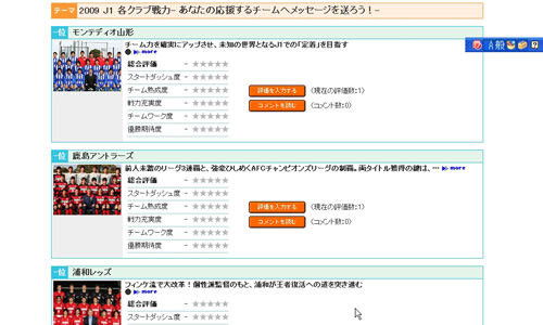 【レーティングJ】開幕直前!2009 J1 各クラブ戦力-あなたの応援するチームへメッセージを送ろう!-採点&評価コメント大募集!(09.03.05)