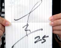 島田裕介のサインは、高校時代の習字の時間に考えたものだそうだ。(写真3)