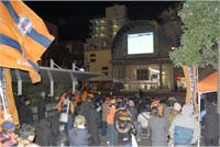 アウェイに行けなかったサポーターおよそ250人が「坊ちゃん広場」に集結。4連勝を信じ、声援を送っていた