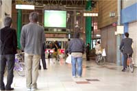 商店街の中でもモニターを見上げ、足を止めるサラリーマンら通行人が次第に増える。「なんでPK…」そんなぼやきも聞こえてきた
