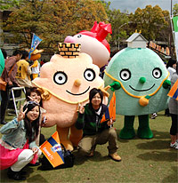 昨季の「ゆるキャラ大集合」より。今季は参加キャラクターが増えましたが、愛媛のスタッフは県内の新たな「ゆるキャラ」をまだまだ探しています。
