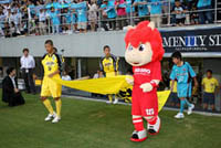 観客数10,529人の見守る中で、堂々とフェアプレーフラッグを掲げて入場しているのは“ロアッソ君”。