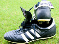 彼が履いているアディダスのコパ・ムンディアルというモデルは、サッカーをやったことのある人なら、履いた事はなくても知らない人はいないほどの名品。様々なテクノロジーを駆使した最近のスパイクと比べると、何の飾り気もないシンプルでクラッシックなデザインだが、天然のカンガルー皮革を使った足馴染みの良さが、繊細なボールタッチを可能にするのだろう。