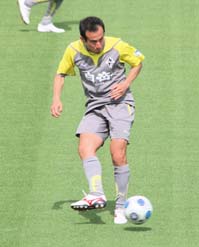 先週のトレーニングで元気にボールを蹴る喜名選手。今季初出場に向け、これからさらにコンディションを上げていく