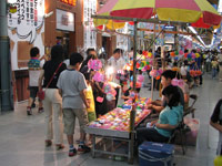 大街道、銀天町商店街で、土曜日に行われている「土曜夜市」。商店街中に屋台が出て賑わう。時間の都合さえつけば、是非、足を運びたい。松山の町の温かさが伝わってくる。