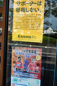 厳しい結果が待ち受けていた四国ダービーの翌日。梅雨明けが宣言されたばかりの愛媛の空は、昨日までとは違って青空が広がり、夏の日差しが照りつけます。そんな中、午後から選手たちは次の試合に向かって既に準備を始め、また、それをサポーターたちも温かく見守っていました。