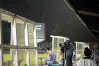 雨が強くなり、雷雨になったために19:15過ぎに試合は中断へ。