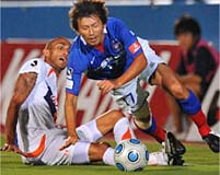 すると逆に、横浜FMにビッグチャンスが。31分に田中裕介が、相手GK江角浩司がペナルティーエリアを飛び出してクリアしたボールを拾い、ロングシュート。ゴールはガラ空きだったが、惜しくもバーの上へ。その後、大宮がミドルシュートを2本放つなど、流れを取り戻して前半を終える。