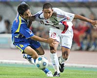 F東京は、前節で欠場した4人のうち、梶山陽平、長友佑都、ブルーノ クアドロスがそろって先発復帰。もう1人の石川直宏は間に合わなかったが、右サイドハーフには鈴木達也が10試合ぶりの先発を果たした。立ち上がり、いきなり小林亮のクロスから長谷川悠のボレーを浴びたが、GK権田修一のセーブで防ぐと、返す刀で平山相太のマイナスクロスに鈴木がシュート。その後はボールポゼッションを一気に高めていった。