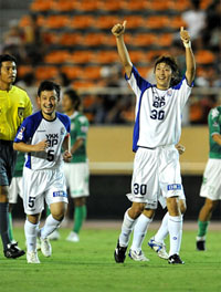 ここ2試合は、先にリードを許し後半で追いつくという試合が続いていたが、この試合は違った展開となった。序盤から東京Vに主導権を握られたが前半ロスタイム、相手の攻めているボールを奪うと、右サイドで朝日大輔、桜井正人、野嶋良の3人が上手くボールをキープし、最後はペナルティエリアの外から桜井が右足で決めた。「旬だから」と、第19節以来に先発起用した楚輪監督の采配が的中した。