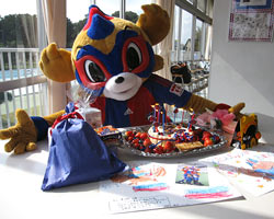 そしたら試合の時、東京ドロンパ君にごほうびとして”しろ ベア”をプレゼントするよ!!