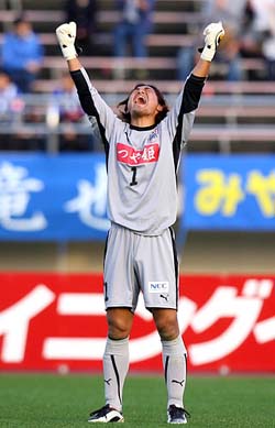 現在13位と「残留」の2文字が頭から離れないであろう山形のGK清水健太。この試合で神戸に1-0と競り勝ち、自らの力で降格の危機から一歩前進。この勝点「3」がどれほど大きいものだったのかを物語る写真となりました。