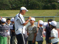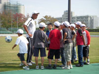 最初は、スタンドでおとなしく練習を見ていたのだが、岸野靖之監督に「ボールを見せて」の一言で一気に火がついた。