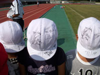 色紙なんて用意していないので、白い帽子にサインを書いて行きます。