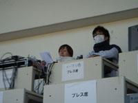 即席の放送席はプレス席の一角に設けられ、彼の絶叫が聞かれることになる。プレス席はサポーターと隣り合わせなので、鳥栖のサポーターにとっては『仙台びいき』の実況がうるさくて仕方がないかもしれないが、仙台のサポーターにとっては心強い見方でもある。(◆PHOTO1)