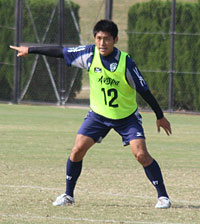 丹羽が福岡にやってきたのは昨シーズンの終盤。チームに合流して初めて紅白戦への参加が許された日、ピッチに入った丹羽は誰に支持されることなく、真っ先に久藤清一のもとへと進んだ。そして大きなジェスチャーを交えながら話を終えると、次は布部陽功のもとへ行って同じことを繰り返した。自ら両ベテランのもとへ歩み寄り、自分の主張を伝えながらチームの約束事を確認する。当たり前のことかもしれないが、プロとしての実績が少ない22歳の若者が、合流した直後のチームで、しかも両ベテランに対して堂々と自らを主張した姿が今でも印象に残る。